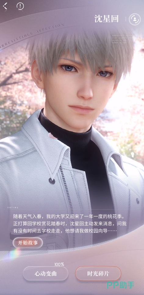 首先可以通过“时光碎片”来进行言语上的互动,时光碎片中记录着很多章节中发生的故事,在这里你可以回味第一次遇见沈星回的场景,这个场景是在阳光明媚的校园中,你通过与他对话可以充分了解到这名角色的魅力。
