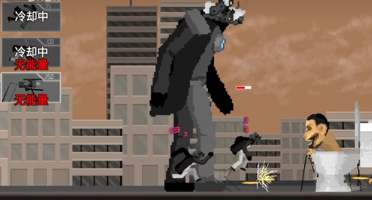 最后等对面的巨型马桶人登场之后,差不多我们的钱也足够了,直接上我们的泰坦巨人即可。基本上到了这里,就是稳稳拿下了,随后再花点钱补点伤害,出个监控蜘蛛或者监控人之类的,就能很轻松的过关了。