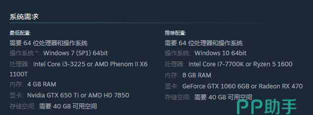 弄清楚语言该怎么设置以后,不少人对于它的配置要求比较有兴趣,通过下图我们可以得知它是不吃配置的,推荐配置的CPU是I7-7700K或者R5 1600,显卡是GTX1060或者RX470即可,简单来说低配置大家就可以畅快游玩啦!