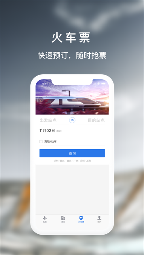 作为商旅平台之一,软件为大家提供了机票和高铁等多种不同的出行方式,同时还有优质的服务带给大家,为的就是让用户能有个好的出行购票体验,包括实时的了解里面的票务信息和提前预订等功能也能使用。