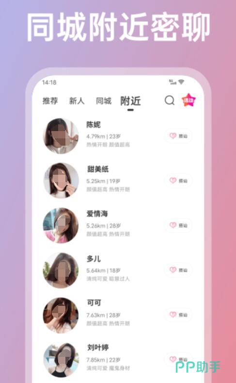在这个应用的首页,会显示一些高颜值的单身网友,大家可以选择自己感兴趣的,去直接进行交流,无需添加好友,即可畅谈。当你给予了软件定位权限后,还能搜索到附近使用该产品的用户,对其中喜欢的朋友,你可以自动出击,与其进行文字聊天,获得对方同意后,还能面对面视频交流,和对方坦诚相待。