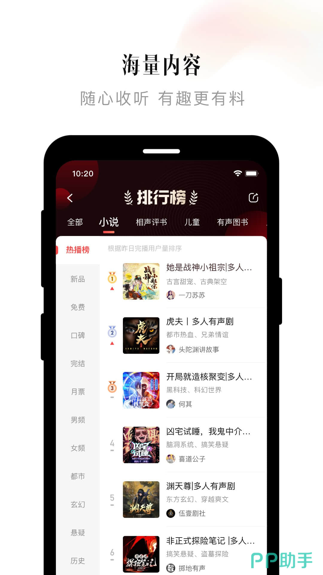 软件中为大家准备了许多的优质歌曲,同时覆盖面上还非常的广泛,像相声、评书和小品这些,用户到时候点击就能了解到,此外各类优质的内容点击就能看到,不论是爽文还是悬疑巨作都能解锁哦。