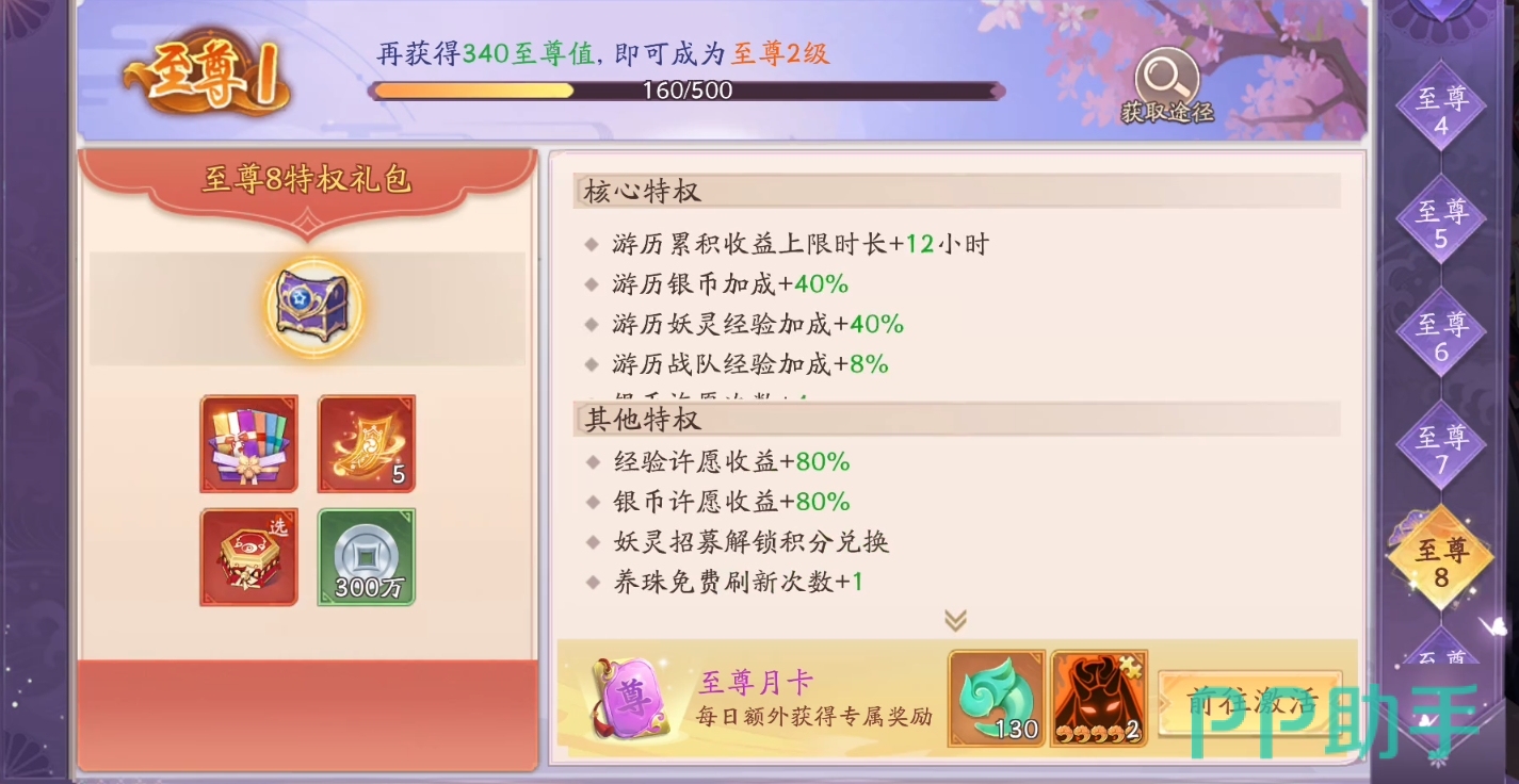 第二个值得氪金的是月卡,通过解锁鱼卡可以每日获得一定数量的至尊值和传说妖灵的碎片,这两项东西都是非常有用的,能让你加快阵容的成型速度,也能帮助加速角色的提升。