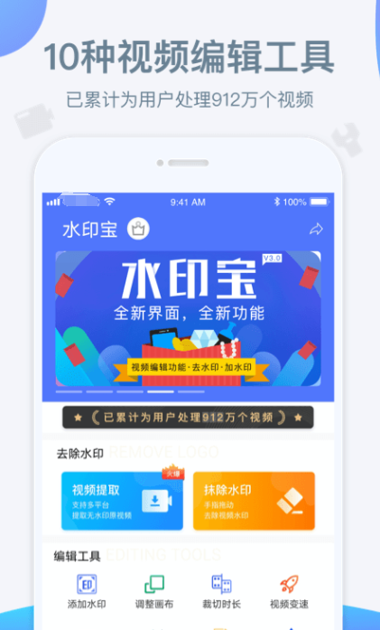 支持对视频进行去除水印、调速变速与压缩等调整功能,可直接修改视频的封面,多个区域框选一键提取去水印,视频的提取支持十多款热门的视频平台。