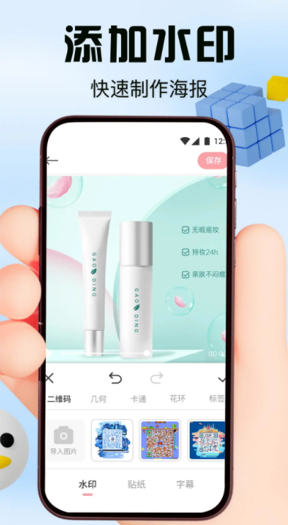 视频素材二次编辑与美化,内有的水印素材与去水印的工具较完善,能够还原视频与图片的真实质感,快速添加自定义水印制作海报,还有海量的图文视频模板任你选择。