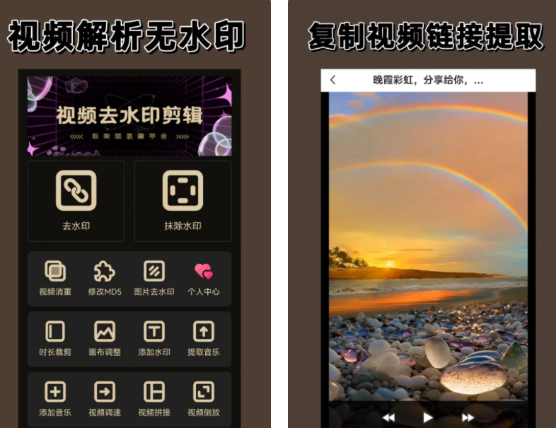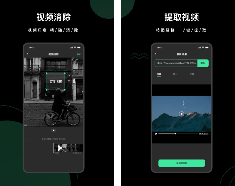 有特色的短视频解析,只需复制短视频链接,即可在软件上一键无水印下载,还能对多个视频同时提取。对于自身带水印的视频,可使用无痕去水印智能抹除。