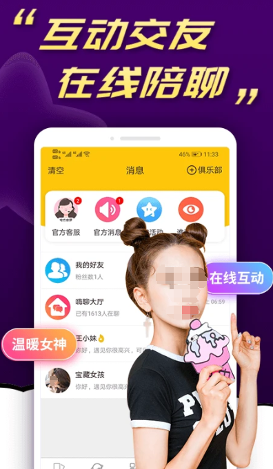 国内比较大型的聊天交友平台,单身同城约会的玩法较多,有k歌主题房、颜值速配地与直播互动等交友方式,陌生人交流不尬聊,帮你快速找到趣味相投的朋友。