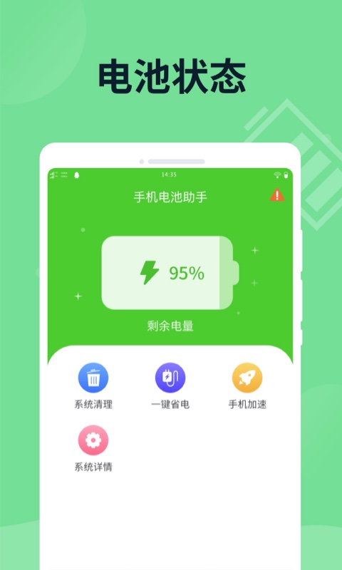 它能让用户去实时的检测电池的温度情况,包括安全检测和降温等的处理,让大家能轻松的修复电池损耗,延迟手机电池的使用寿命,当然智能化的省电功能也会带给大家,让小伙伴们不用在为没电而发愁。