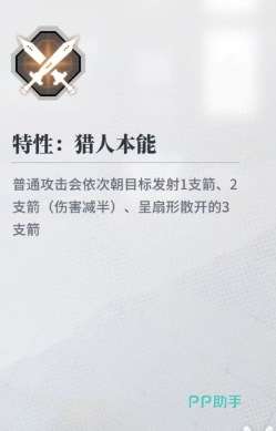 猎人本能:它又是一个特性技能,其出处是四星雷系角色艾摩诃,这一角色手持弓箭,所以技能描述中也不可避免的会提到箭矢,其特性技能的效果是普攻会对目标依次发射1,2,3支箭,不过后续第二次和第三次攻击时的箭矢会有一定程度的改变,其中第二次的伤害减半,第三次则会呈扇形散开,但综合来看其整体伤害还是非常可观,毕竟这是为数不多的三连击招式。
