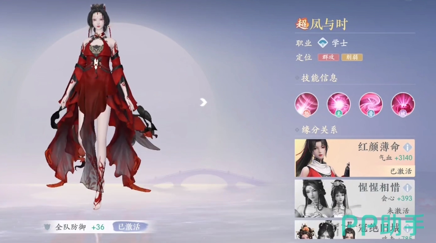 凤与时:这是一个打持久战非常厉害的群攻型角色,她的四个技能都有着不错的数值加成,而且范围普遍都很大,其中最强的还要当属怒气技能,使用后不仅可以同时伤害四名敌人,并且还有几率能够挂上灼烧,之后的每回合都会持续进行扣血,并且这个扣血的数额并不固定,而是跟敌人的最大生命值挂钩,所以敌人血越多受的伤害就越高。