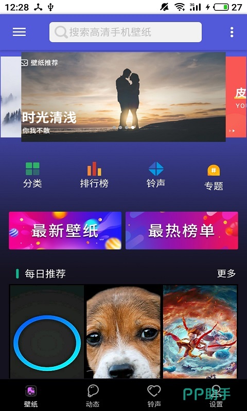 有的这款APP所有人都能够发生成为壁纸大师,并利用这些壁纸内容对手机进行装点,包括开关机界面,来电提醒界面,聊天背景以及个性化的头像都可以在这里下载相应的图片,来进行使用,对手机进行美化的同时,还能够不断的更新这些图片,让手机呈现新鲜感。