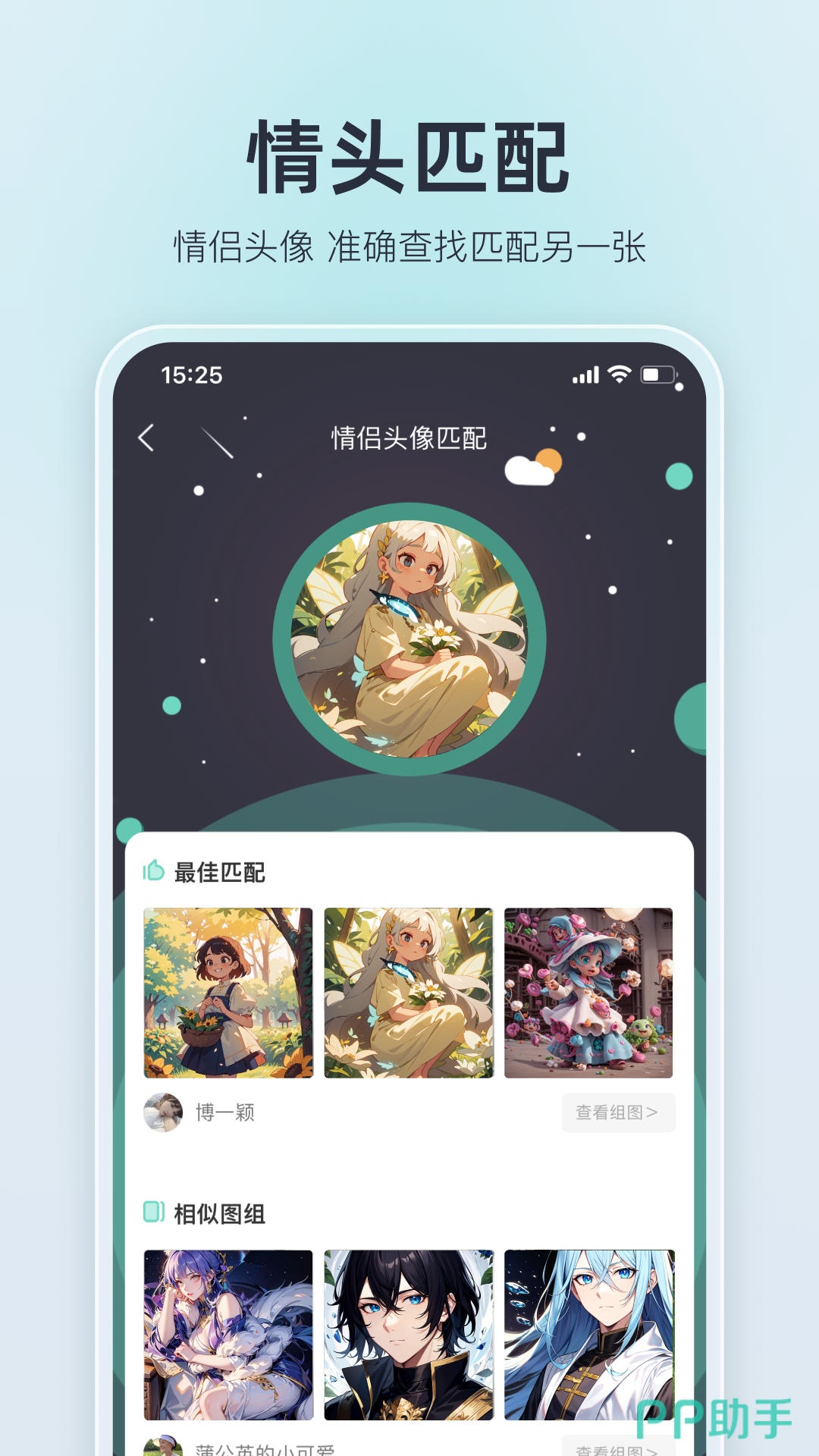 用户可以搜索到一些高清壁纸以及包括网红明星角色在内的各类头像,它甚至能够进行投向,情侣的匹配,帮助大家找到另一半的头像,平台还有文字图制作功能,帮助大家精准的进行朋友圈的制作设计。