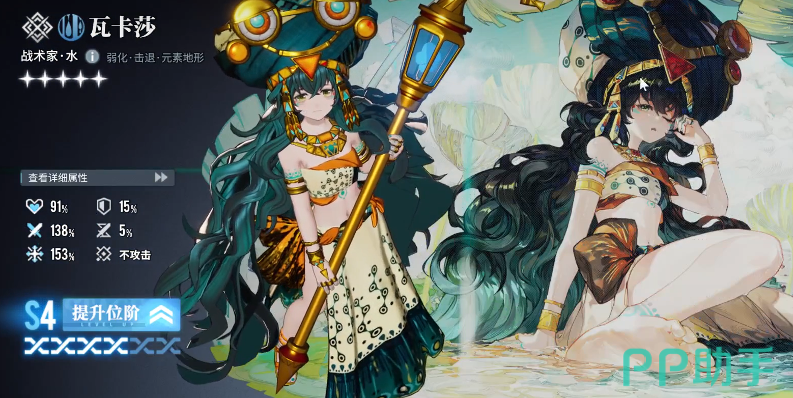 其次就是五行水元素战术家,瓦卡莎了。她是一位很不错的辅助性角色。俗话说流水的输出,铁打的辅助。瓦卡莎是一名非常万金油的角色,适用于大多数阵容。她可以有效提升水、雷和风系角色的输出能力,还能将水元素和雷元素进行混合,触发“超导”反应,是非常强力的控制技能。