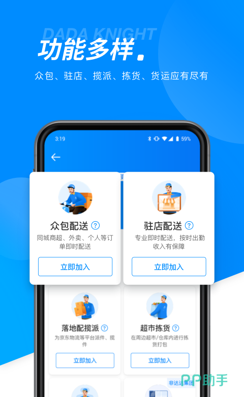 在全国范围内给大家开启快服务体验,以是代买、代办、代驾等,从业的时间自由订单数量也多,如果是优秀骑手还会增加奖励,专业的培训让你更快上手。