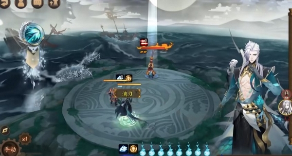 泷之决荡,给自身外的单个队友添加2回合的“护航”,同时对敌方全体造成防御力150%的真实伤害。护航,是一种增益印记,可以降低鬼火消耗,如果携带该印记的式神回合内没有使用鬼火,同时泷不被控,那么泷会触发决荡时刻(每回合只会触发1次)。技能在升等之后还附带拉条,可以令决荡时刻的伤害不触发敌人的御魂、被动效果。