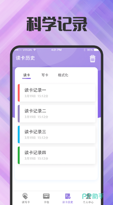 旨在为门禁卡的简单备份提供一种简单的方法,用户只需通过移动电话扫一次,就能把相关的数据保存到 APP里,就可以对磁卡进行数字化备份。这样既方便了使用者,又避免了卡片遗失、损毁等问题。除了备份功能外,该 APP还支持共享,允许用户共享已备份的权限,从而更加灵活地对权限进行管理。