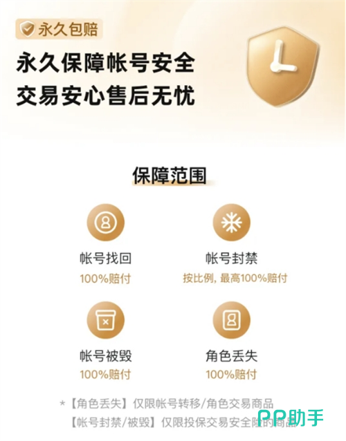 在平台中开放了很多的安全保障机制,为的就是让用户能获得稳定的交易环境,大家可通过平台来自由的选择喜欢的账号入手,在平台中它就为用户开放了交易险的功能,买家在下单的时候可去进行选择,这样一来就能享受到平台承诺的永久包赔服务,对于账号的找回和封禁等问题都能得到很好的处理。