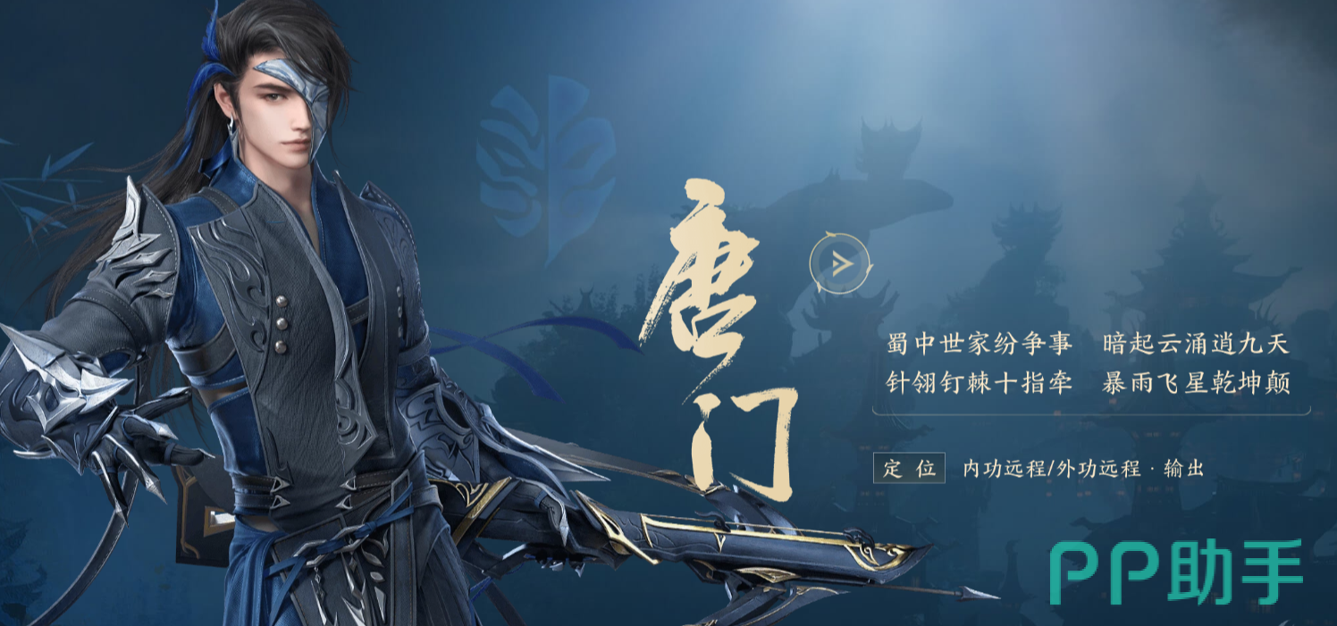 第八个职业为【唐门】。唐门也是拥有两个心法的,玩家可以在成为放置远程机关的机关师和成为远程输出之间选择。唐门的武器为弩。唐门位于蜀地,是江湖中最为神秘的暗器世家“唐家”。