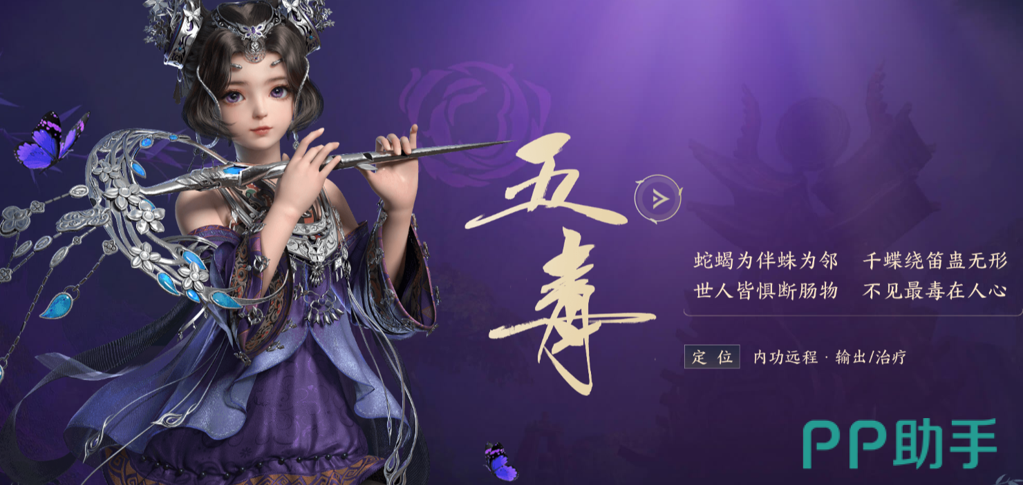 第七个职业为【五毒】。五毒这个门派来自于苗疆,不同于中原地区的门派,五毒的武器为笛子,就和小说中写的一样,擅长祛湿毒物,玩家可以在成为奶妈和远程输出中进行选择。