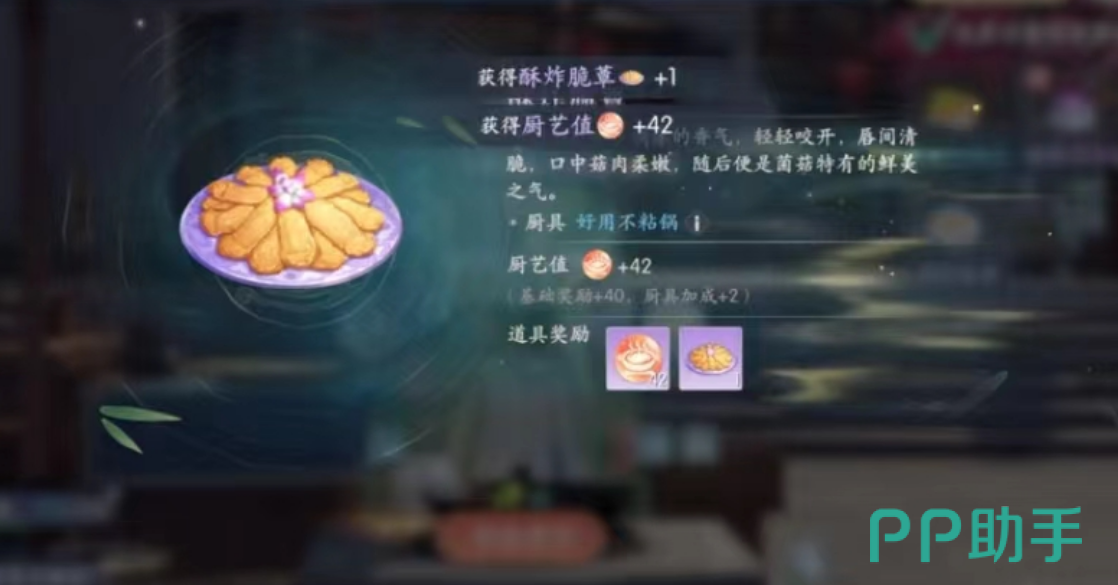 桂花醉鸡的出现频率也很高,使用的原材料有三种,桂花、鸡肉和玉酚,如果把玉酚换成秋油的话,就是另外一道新菜桂花酱鸡。猴头菇、竹荪、山泉水组合起来是山珍汤。辣椒、豚肉、佐料包混合起来就是辣味卤肉,其中佐料包需要做任务去获得。黄金闷饭比较复杂,需要的原材料是栗米、杂豆、青菜和山泉水。最后给大家推荐一个我最喜欢的菜鸡蛋羹,用的是鸡蛋、山泉和秋油,出锅的时候颜值非常高,软软糯糯的,特别有食欲。