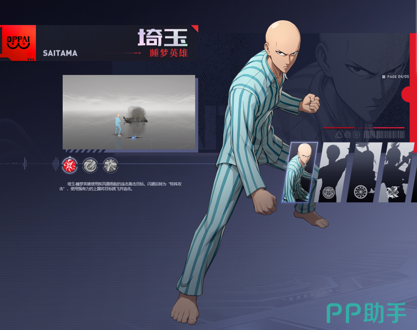 第一名:琦玉。这个应该不用多说,琦玉是一拳超人世界中的最强角色,没有之一。他的战斗力是无限的,他的技能是一拳必杀,但是在游戏里还是削弱了的。但是毕竟我们玩的是一拳超人,数值强不强就已经不重要了。琦玉在本作中有两个时间段的人物可选。如果你想体验一下琦玉的强大,你可以试试用他打一打BOSS或者挑战一下高手,但是如果你想享受游戏的乐趣,也可以直接上手琦玉来体验一下琦玉视角的整个故事线。