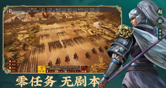 进入到战场中,玩家可招募良将,结合数百名盟友在战场上发挥余热。可以如同曹操一样,率领众多的手下直接扫平眼前的敌人。游戏中要想崛起,不靠vip,不靠资源的出售,单纯只靠个人的策略,要想逐渐发扬光大,不如就选择脚踏实地一步一步通过战术的搭配,让自己参与一次又一次的争夺中,最后能站稳脚跟。