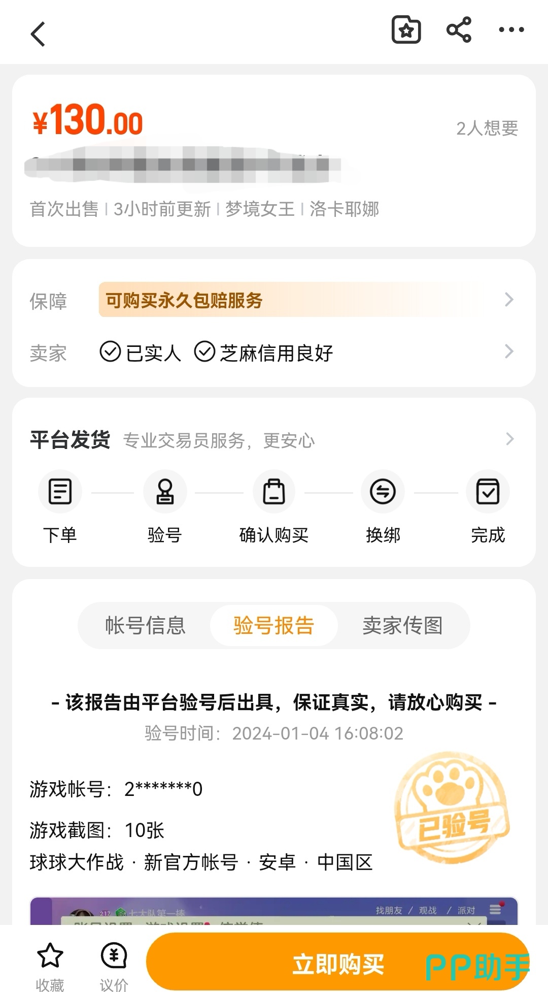 每个游戏专区下对应的商品链接很多,你可以通过查看详细信息以及验号报告等内容来确定是否是你需要的,部分卖家会将游戏账号当中的资源和装备都以图片的形式呈现,验号报告平台也是保证真实,让大家放心购买,所以你在下单的时候也尽量要找有验号报告的去买,对于卖家身份以及卖家的芝麻信用信息也能够看到。