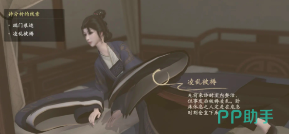 很多小伙伴们想问的案件攻略一般是指在第五章的案情,玩家们需要在这个案子里先寻找政务才能破案,整体难度并不高,首先玩家可以和孙念儿进行对话,之后便有了正言,将相应的关键词按照位置进行整体的排布,就可以得出一定的猜测结论之后就可以根据证人证言来完成相应物件的寻找,这些物件分布在四个位置,分别在窗户,地面,床上和门口,点击查看按钮即可获得一些相应的提示。