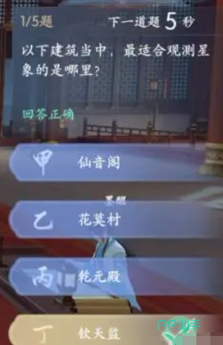 只要可以顺利的回答游戏中的题目就能够提升到从七尹,所以对于玩家来说是比较重要的一个考试,在这场考试中总共会有五个题目,第一个题目问的是这四个选项中最适合观星像的位置,玩家可以选择第四个钦天监。