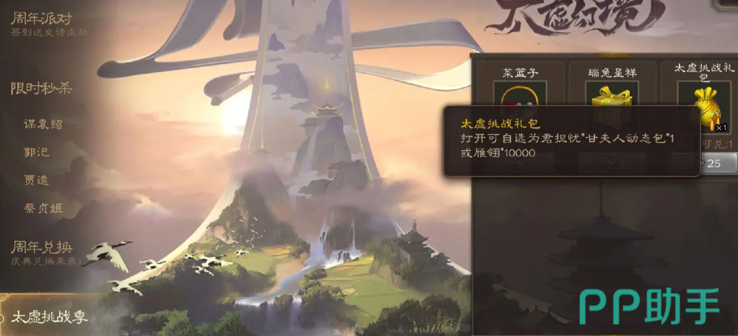 本次的新赛季名称【太虚幻境一长板桥】现在已经开启了!而新赛季会清除之前赛季的所以故事线难度,并且所有的体力跨赛季也不会进行保留!玩家们每天上线都会获得2个免费的指点江山笔!