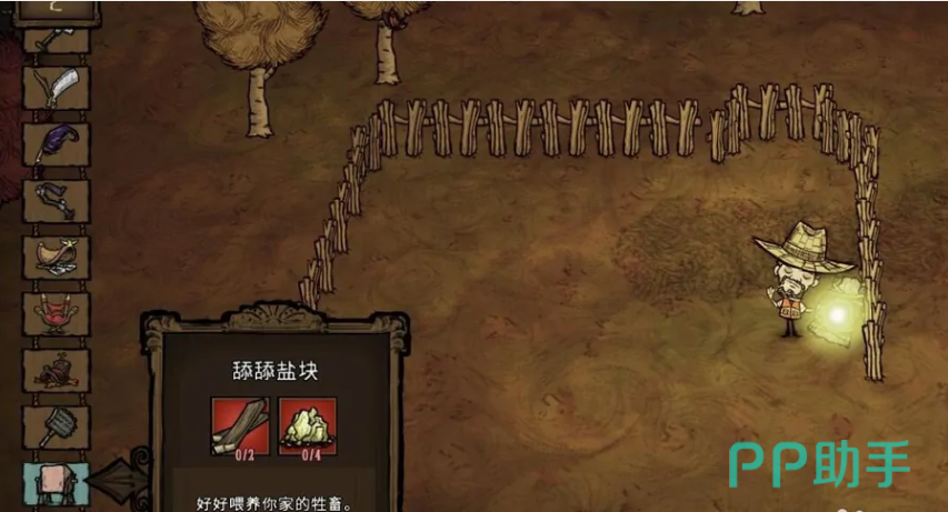 在养牛时先围一个牛圈,但是应该留一个空。接着在工具栏里面放一些舔舔盐块道具。道具放入到牛圈里面可以有效达到吸引的作用,很快就会吸引过来。这一个吸引的方法非常简单,不过玩家需要先准备好道具,没有道具一切都是枉然。