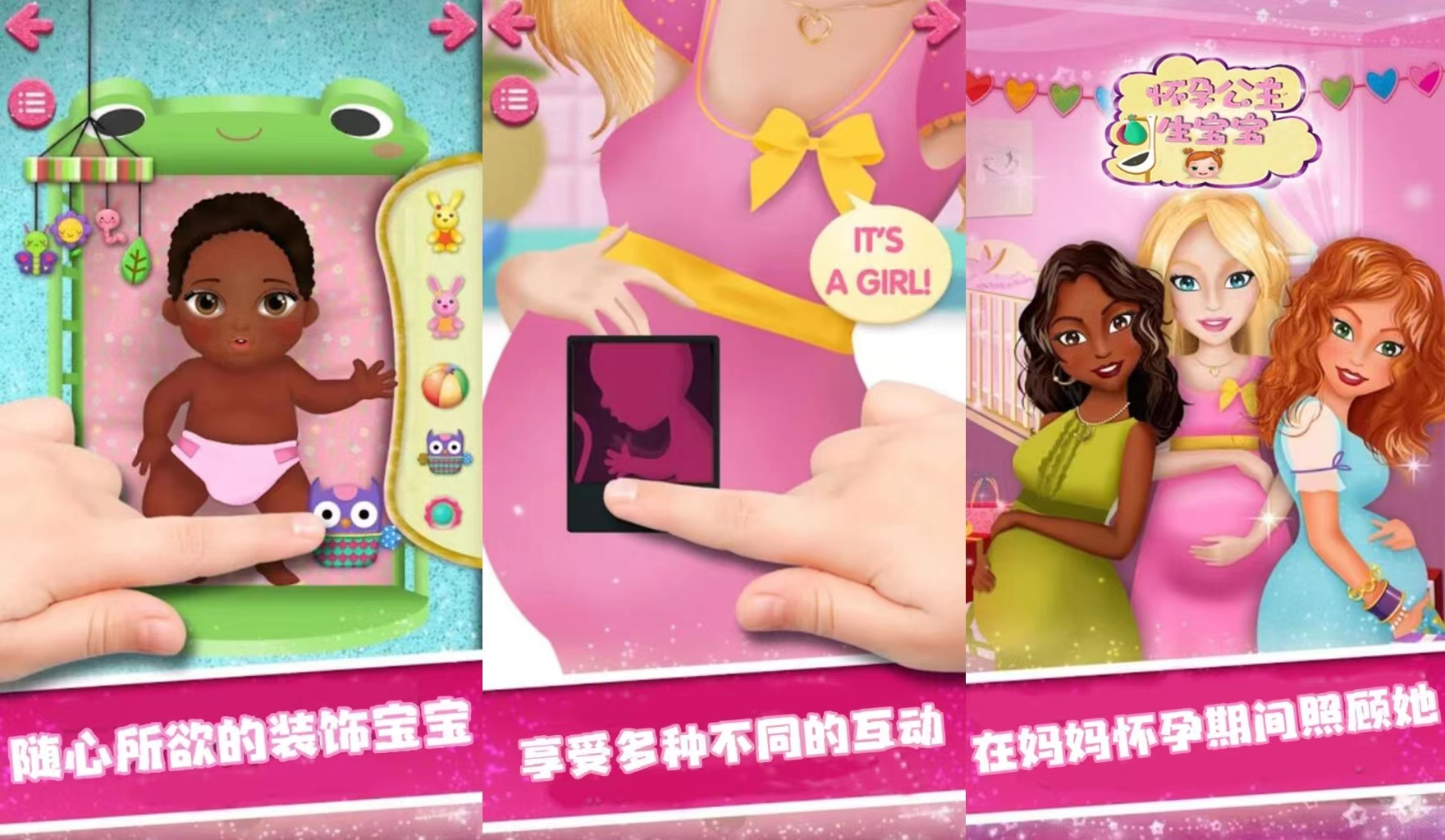 这款手游是一款十分适合亲子的娱乐游戏,在这里将会有三位等待生产的公主,而玩家需要帮助她们一起照顾好腹中的胎儿,在这过程中,玩家可以感受到母亲怀孕期间的不易,也可以感受到孕中胎儿的奇妙。等待婴儿出生后,玩家还可以自由打扮和装饰小孩子,玩法多多。更可以帮助三位公主设计可爱的亲子装等等,喜欢这款手游的玩家不妨现在就下载游戏体验吧!