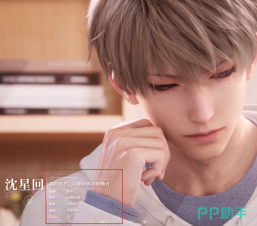 沈星回的职业是深空猎人,大家是不是觉得深空猎人这个职业非常的严肃呢,对待工作的时候,确实是非常的严肃,但是在和主控相处的时候,大家就可以看到沈星回非常调皮的一面了!最关键的是,沈星回的手部建模非常的出色!如果大家有手控的话,一定不能错过!