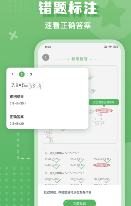 在做数学题目的时候,通过多做口算题的方式既能提高数学成绩,也能提高做数学题的时间,该软件就是帮助学生家长老师快速批改数学作业的软件。只需拍照就可检查作业,判断对错,同时也可显示出解题的具体思路,非常适合数学题做错的人群使用。有了这个软件再也不担心自己的数学题不知道该怎么做,该如何解答了,是学生必备的一款软件。