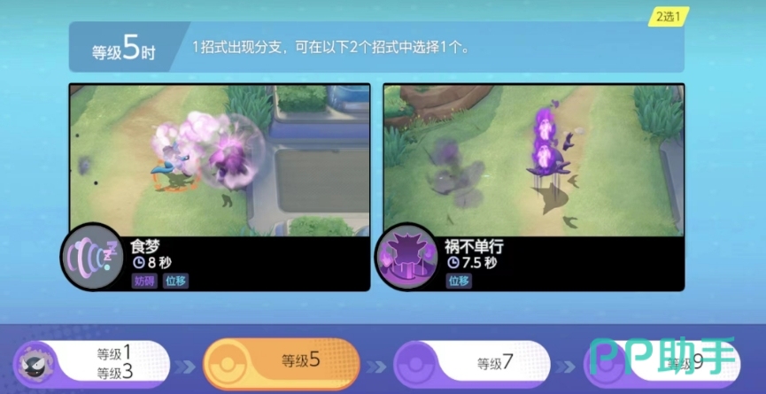 五级之后可以进从两个技能中进行二选一,第一个是“食梦”,CD有八秒,不过却兼顾了控制与位移,使用后可以直接令被命中的宝可梦陷入睡眠,如果命中的是已经睡眠的宝可梦,那么则会出现在它身后并恢复自身的体力,同时这招命中敌人还能降低自己其他小技能的冷却时间,同时招式之后的下次普攻也会得到强化,不仅伤害更高,而且攻击后还能刷新食梦的CD。
