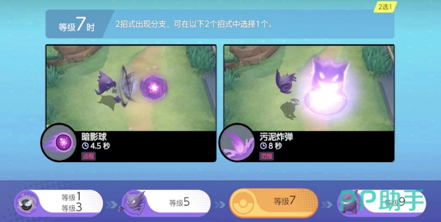 七级的两个技能则更加偏向于输出,第一个是“暗影球”,使用后可以投掷一团黑影进行远程打击,命中敌人会短暂降低它的移速与特防,第二个技能则是“污泥炸弹”,使用后会向目标区域投掷污泥,命中敌人后会令其陷入中毒,两者都有不错的伤害和减益能力,可以很好的配合队友。