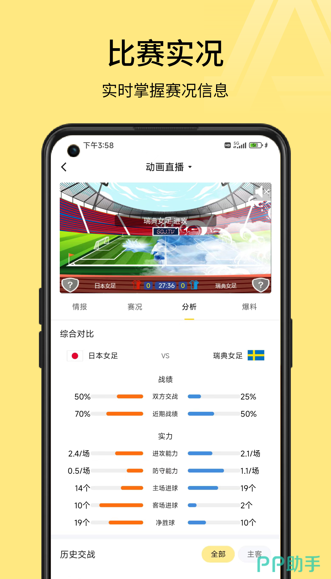 体育赛事分析数据在赛事百科查看,覆盖了200多个国家和地区的各种体育项目赛事直播,有专业的赛事数据作为支撑,让专业的分析者来分析整个场面状况。