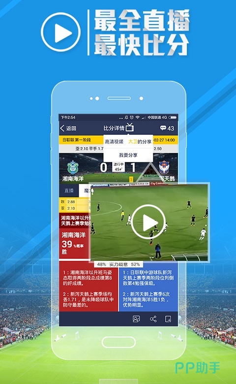 好玩又专业的体育赛事分享平台,其实的比赛直播内容可以看到各个球队的赛事比分,专业的分析者与主播在线互动分析整个场面,积分排行随时看。