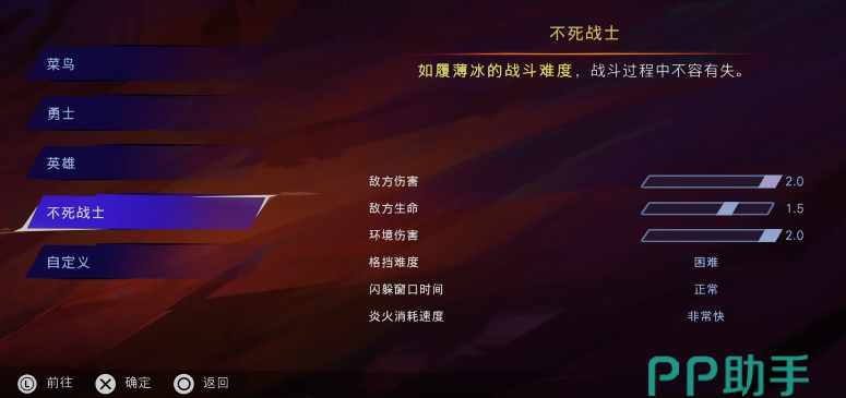 本作并不锁难度,玩家在第一次开始新游戏时,画面就会弹出难度选项。一共分为五个档,其中一个是自定义难度,默认难度为勇士,最简单为菜鸟,而最难则是不死战士。如果你不想花费太多精力在该作上,默认的勇士难度就够了。