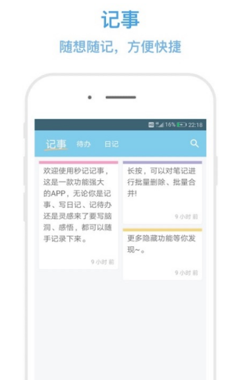 随时随地打开该软件,就可记录生活中发生美好的事情,具有快速、高效、便捷、安全等多种优点。可将自己记录的内容复制粘贴到其他应用中,如果担心自己错过了重要的事情,可还会有待办提醒,能够以闹钟的方式提醒用户,非常的贴心,就像是生活中随身携带一个小秘书一样。
