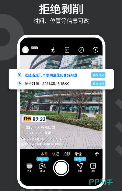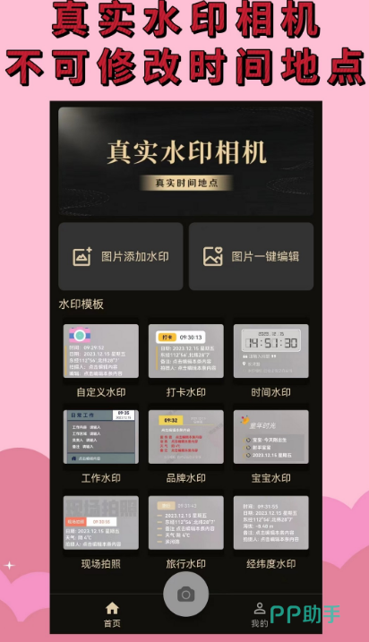 利用该软件除了可在拍照的时候显示时间水印,它也是一款可实时记录时间地点的水印打卡相机,具有强大的水印打卡功能,也有丰富的模板和新奇的玩法,让每一张照片通过带有水印的方式呈现出每一张照片背后的故事,集美颜、滤镜、水印等功能为一体。