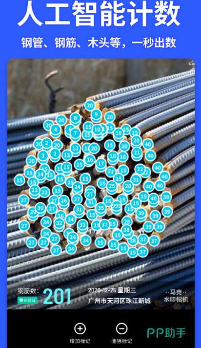 这是使用完全免费的一款水印相机软件,方法也很简单,支持照片图片拍摄,还有海量的水印模板,手机的照片可进行云端免费储存,不占手机内存,如果是图片文件,也能一键储存,具备人工智能计算的功能。如果想要了解钢管钢筋木头等的数量,只要一秒钟就能出结果。