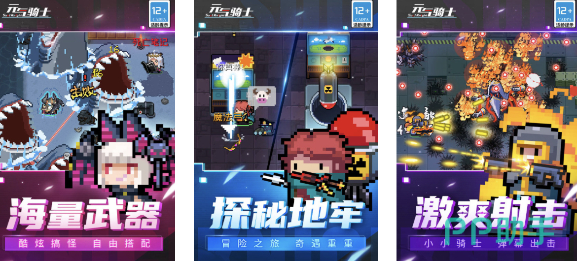可不要小看像素风格的骑士的冒险精神哦。在地牢探险中,玩家既可以拥有各种搞怪元素结合形成的道具,进而操控角色使用它们进行射击对抗敌人,也可以在直接探索游戏大厅的二层,这里对各位玩家已经开放啦。特别有意思的是,作为一款像素游戏,它的角色皮肤却呈现一种华丽的视觉效果。