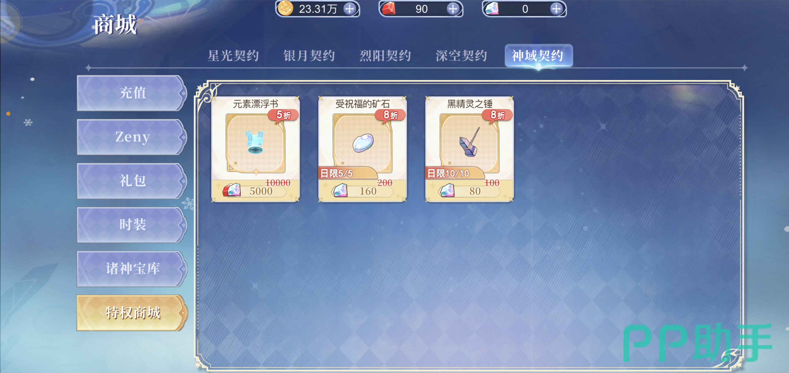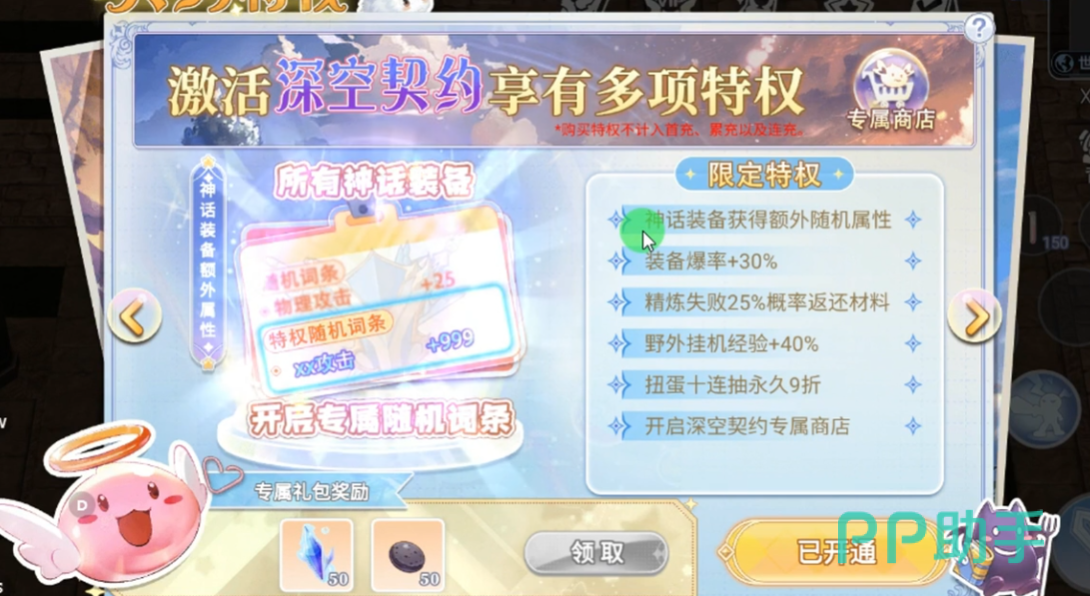 如果玩家们的预算还要再高上一些,小编建议玩家们直接选择第五档契约进行解锁。因为第四档深空契约实际上与第五档神域契约有着一加一大于二的效果,且两者之间氪金数量的差距并不大。四档后,对于喜欢抽卡的玩家们来说会有非常大的提升,因为之后的每一次十连抽都将按照九折计算,且神话装备会获得随机的额外属性。第五档开启后玩家们所有装备的卡槽上线会加一,且能够在商店中购买到元素漂浮书、受祝福的矿石以及黑精灵之锤这三个稀有的游戏资源。