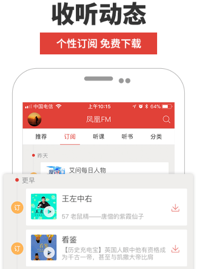 通过该软件随时聆听世界声音有各种精选内容,比如情感文章、睡前故事、财经资讯、音乐电台满足不同身份各类需求以及多场景之下的收听选择。