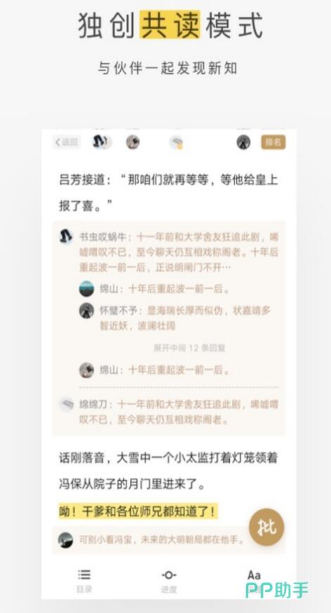 软件内新颖的共读模式,让你可以找到志趣一样的书友,大家一起去阅读同一本作品,期间要是有什么心得体会,可以直接分享出来。