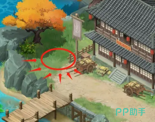 第一个宝箱在白河村的韩医仙家门口,这是一个很容易找到的宝箱,只需要将四个点按照顺时针或逆时针的方向连起来即可。