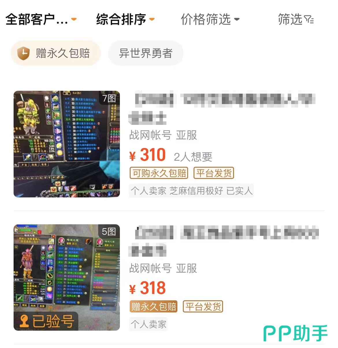 如果大家玩游戏的预算没那么多,也没太多时间来刷图刷金币的话,直接到交易猫来买成品账号或者是买手工金币是很划算的,进入平台直接搜索魔兽世界即可找到商品,成品号价格档位多,几十块到几百块的都有,还能跟卖家协商讲价。