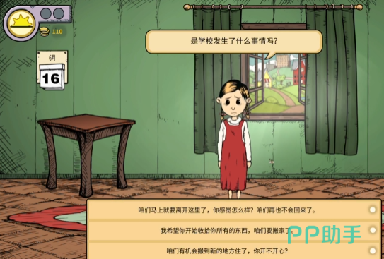 第二个结局是孩子上学没几天就恳求玩家带他搬走,于是就直接带孩子搬家了,玩家在游戏中要留意孩子的需求和表情,才能引导他们说出心里的话,不同的对话会带来正面效果,或是负面情绪,孩子所给的反馈都是不同的;另外一个支线就是没有照顾好孩子,也没有满足他的各种情感需求,于是他就会离家出走提前结束游戏,在这里就不过多的介绍了。第三种结局相对而言最不错,就是在经历了一系列不愉快,决定搬家的时候,玩家写信给孩子的父亲,然后孩子得到了父亲的抚养费,愿意支付一笔费用帮助孩子生活,于是,在远远的从树林边缘看到了国王之后,孩子在肯定了自己的几个好朋友之后,基本还是处于正面的情绪,在带着对玩家的信任和未来的期望中,两个人一起出发了,画面的最后是玩家和孩子手牵手离开,去寻找新的更好的地方。