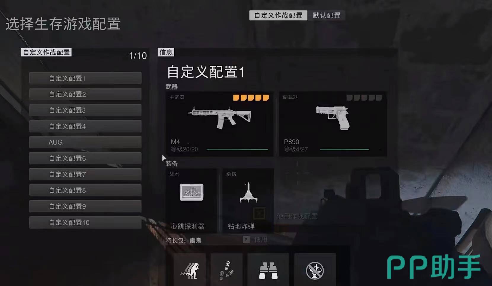 首先在使用武器的第1步就是查看武器的配置,每一个武器的伤害都是不同的,而且在使用的时候需要搭配不同的配件,点击设置就可以更换,还可以选择设置自定义配置,让你的武器的攻击速度变得更快,也可以让你快速消灭对手。